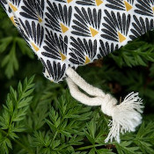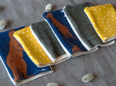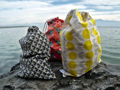 Tous nos produits sont en 100% coton (même les fils) et cousus à la main à Morges. La plupart des tissus sont bios et récupérés.